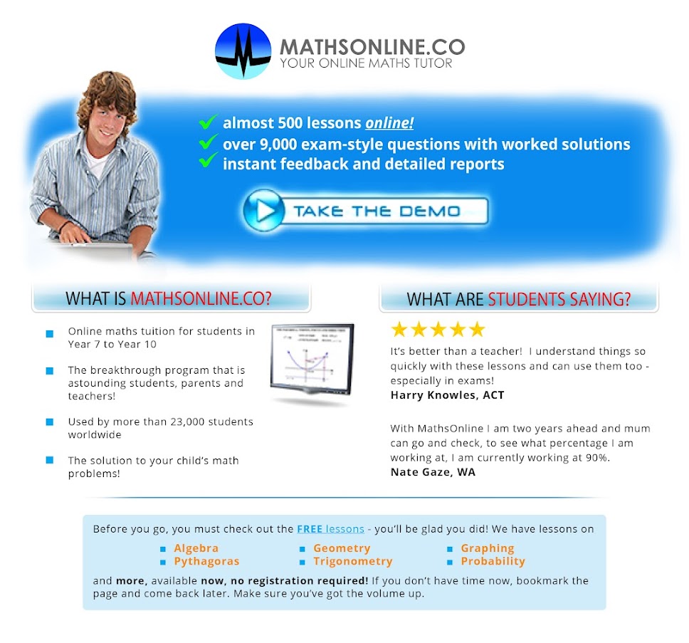 Whether your child needs to catch up, stay on track with their year level, or move ahead for a greater challenge, MathsOnline gives them the tools for real progress. They’ll gain the skills to improve their results in class, and you’ll enjoy happier, more confident kids who genuinely look forward to learning maths.